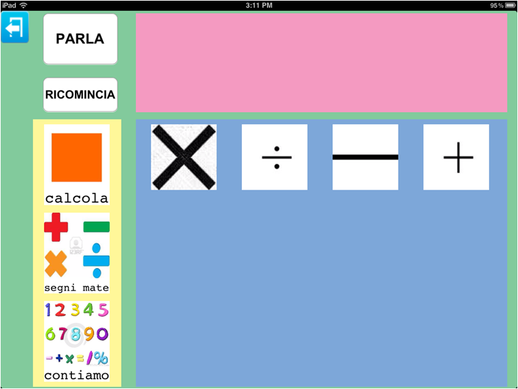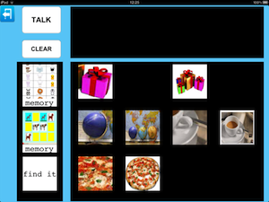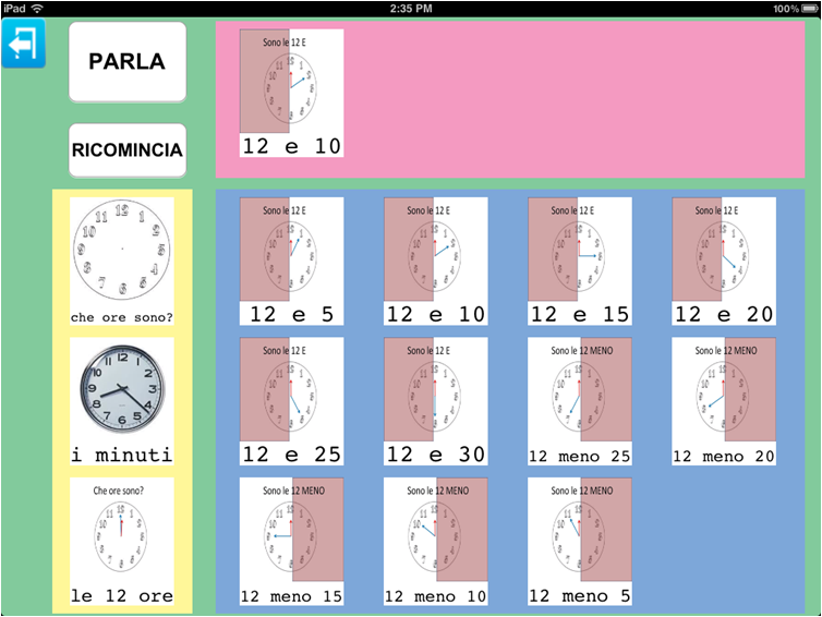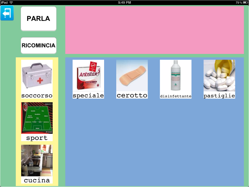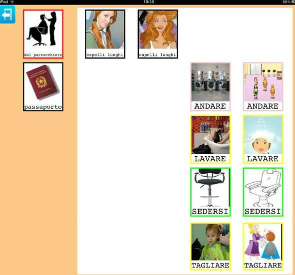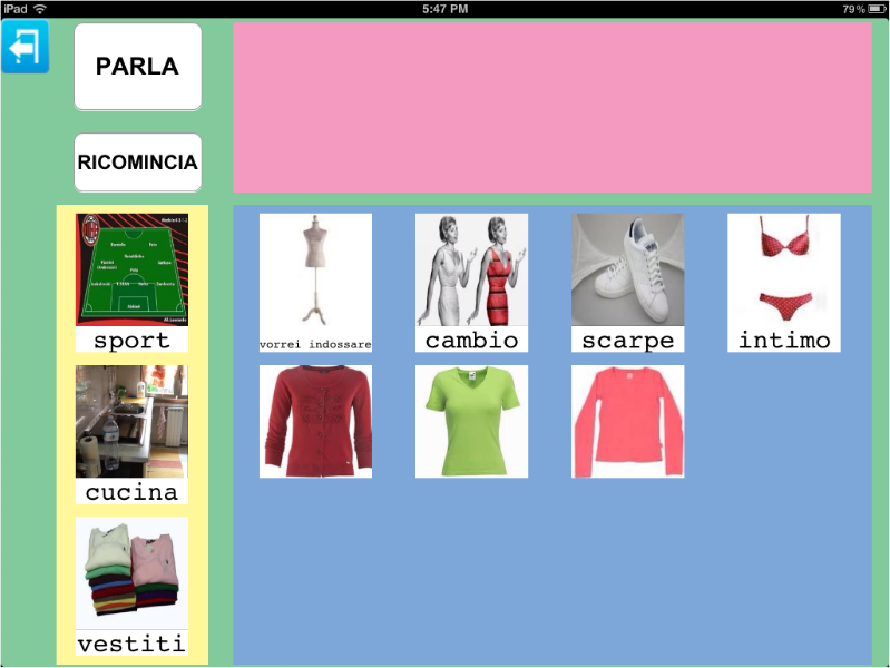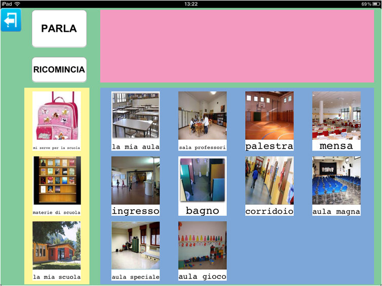 Parla con un Click da la possibilità di creare un'unica tabella all'interno della quale inserire immagini appartenenti a categorie diverse così da rendere necessario solo lo spostamento da una categoria all'altra per recuperare l'immagine desiderata.