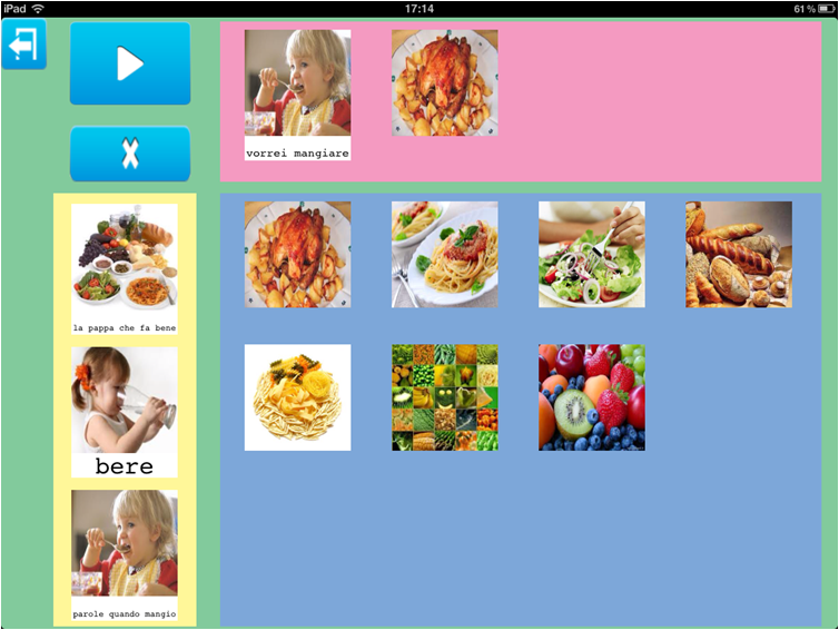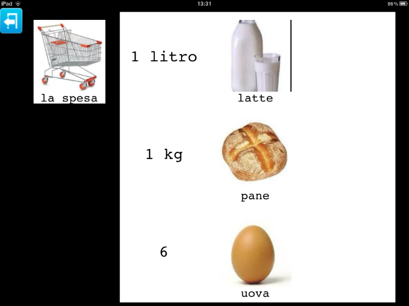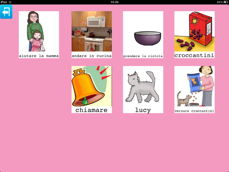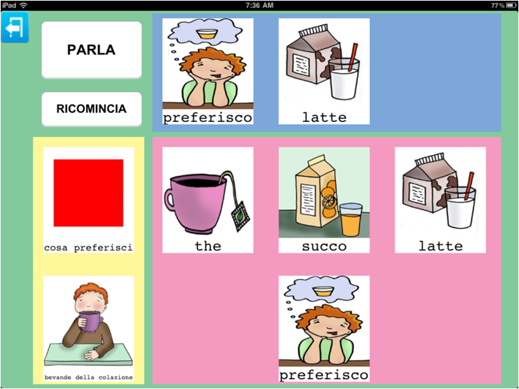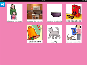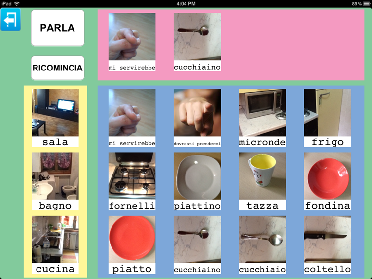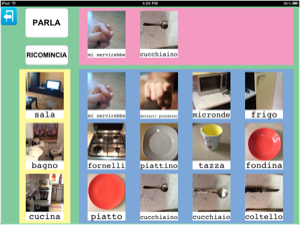 L'esempio inserisce anche due richieste relative agli oggetti presenti in cucina, ma Parla con un Click non da solo la possibilità di richiedere o chiedere. In questo esempio poteva benissimo rientrare l'immagine di una tavola apparecchiata grazie alla quale poteva nascere anche un gioco: