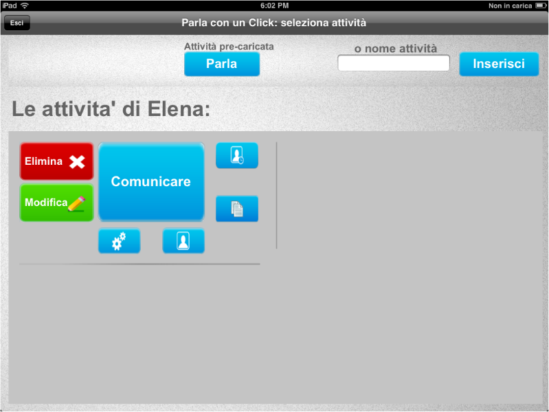 Parla con un Click offre la possibilità di creare tabelle con l'obiettivo di anticipare l'attività o le attività che si dovranno svolgere.