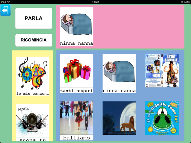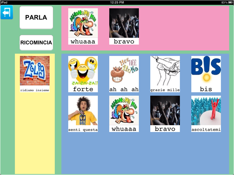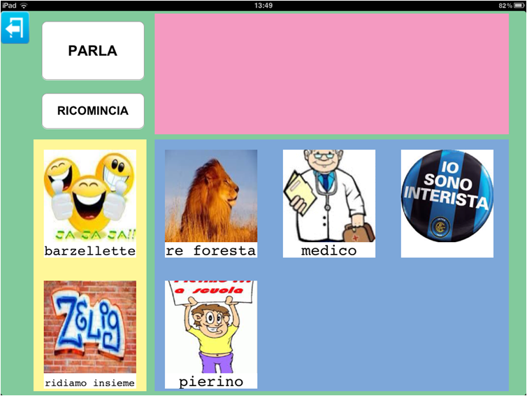 Questa opzione può essere scelta qualora il numero di argomenti e/o di immagini che l'utente di Parla con un Click conosce sia circoscritto ad un certo repertorio di immagini, oppure sia in una fase iniziale di apprendimento della funzionalità comunicativa delle immagini.