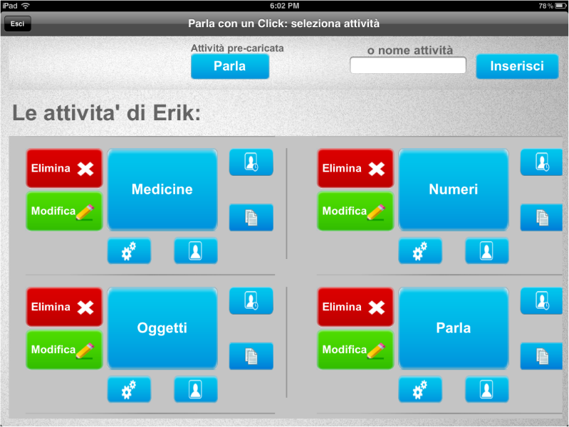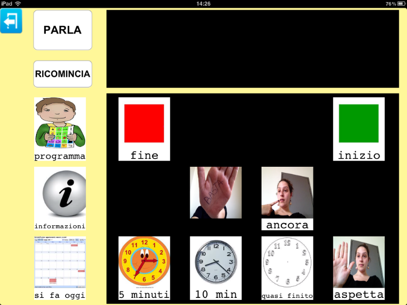Una seconda possibilità offerta da questa opzione è quella di raccogliere le immagini 'più importanti' per l'utente di Parla con un Click, oppure quelle che quotidianamente, a prescindere dall'ambiente in cui ci si trova, vengono utilizzate con maggior frequenza poiché per esempio regolano la routine quotidiana dell'utente stesso.