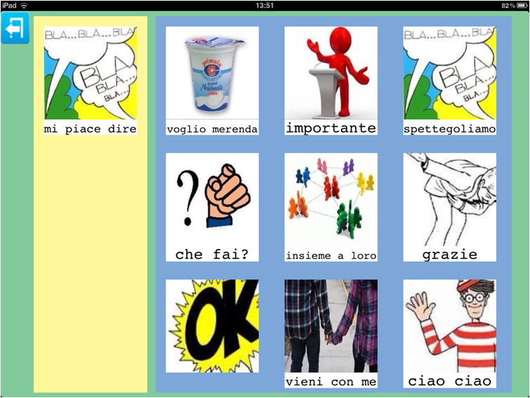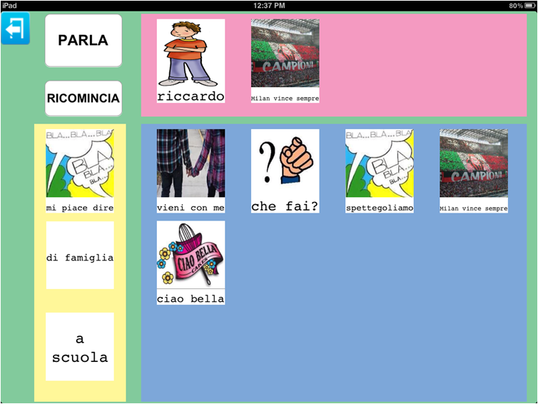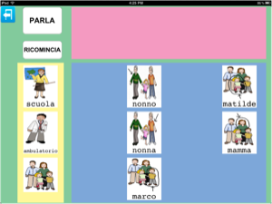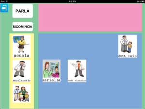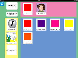 In questa ipotetica tabella, oltre ad inserire le immagini che raffigurano le persone con cui l'utente interagisce, può essere creata una categoria contenente ciò che noi abbiamo arbitrariamente chiamato 'immagini del parlato', ovvero immagini che l'utente più frequentemente utilizza nell'interazione con altre persone o per interagire con queste persone.