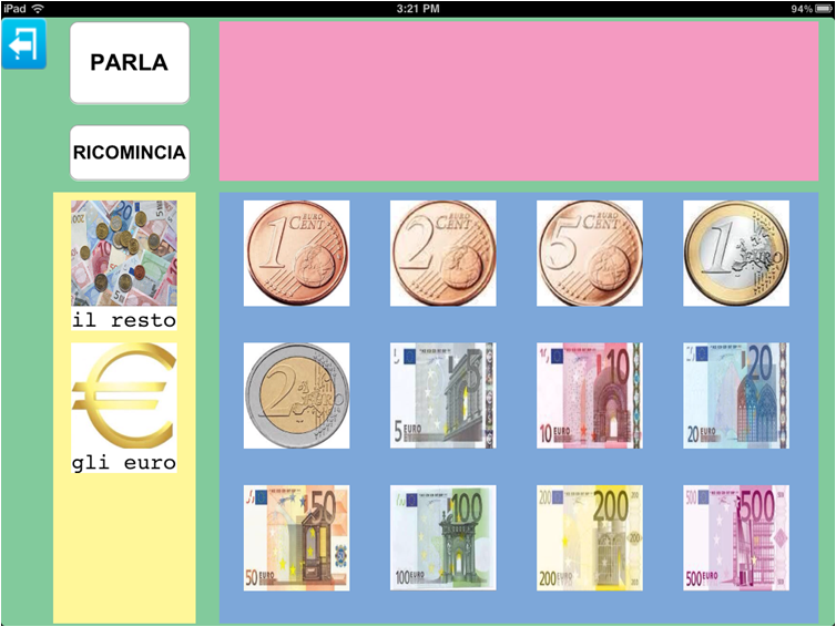 Si è pensato di fornirne qui un esempio affinché si possa cogliere come ciò che a prima vista può sembrare un esercizio di apprendimento e discriminazione della nostra moneta, possa poi in realtà avere una valenza funzionale per l'autonomia personale.